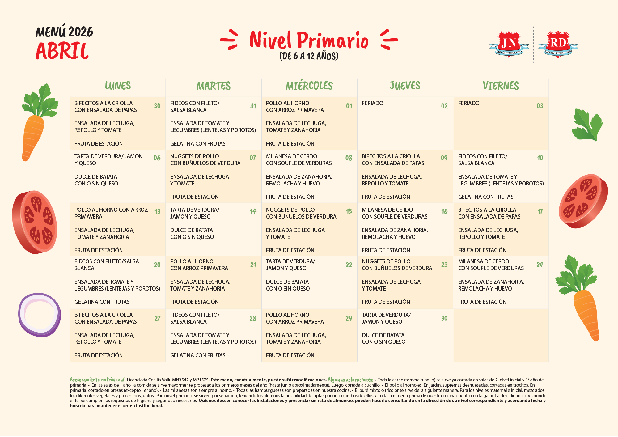 Para mantener una comunicación transparente y promover la participación de las familias, el menú se actualiza mensualmente y se difunde a través de nuestras redes sociales oficiales y en las carteleras ubicadas en el establecimiento. De esta manera, los padres y tutores pueden conocer en detalle la oferta alimentaria y acompañar desde sus hogares la educación alimentaria que desarrollamos en la escuela.